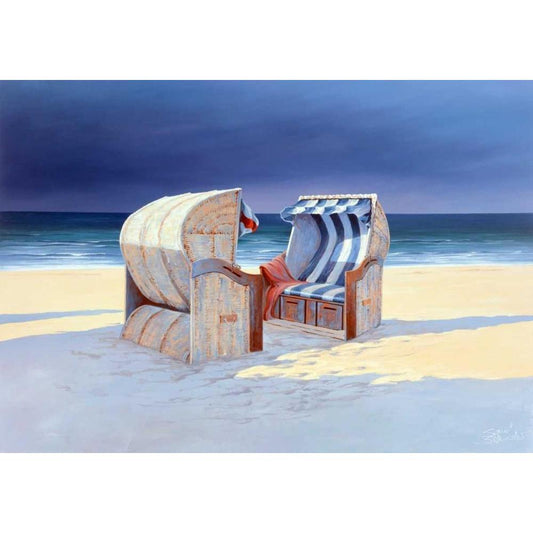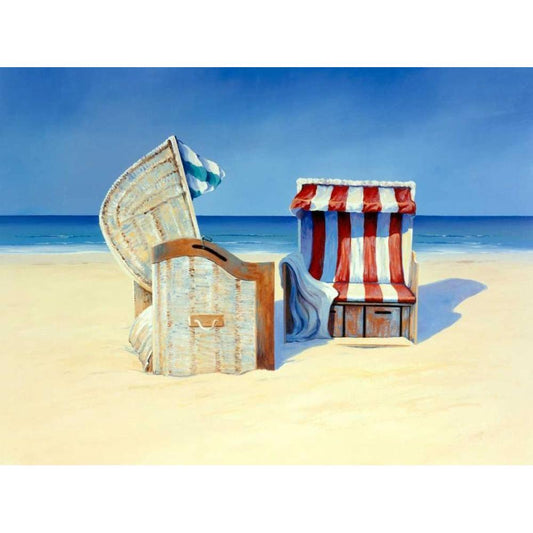 Beach Chairs II White Modern Wood Framed Art Print by Schneider, Sigur