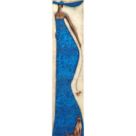 Lady in blue White Modern Wood Framed Art Print by Tsantekidou, Rose