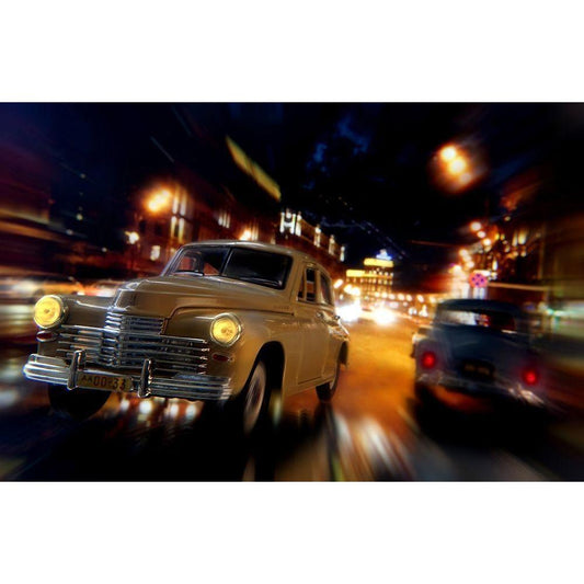 Cars in action - Pobeda M20 White Modern Wood Framed Art Print by Debionne, Jean-Loup
