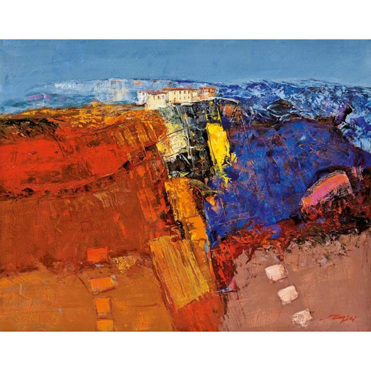 Dorf am Felsen White Modern Wood Framed Art Print by Madjid