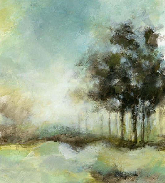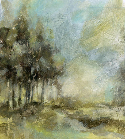 Meadow View I White Modern Wood Framed Art Print with Double Matting by Brey