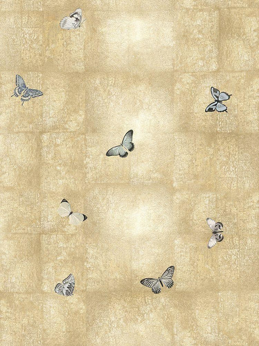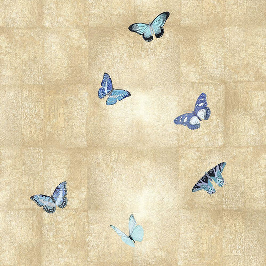Butterflies Blue on Gold I White Modern Wood Framed Art Print with Double Matting by Blake, Madeline