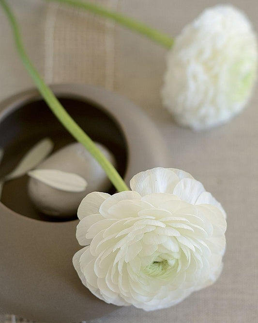 Renoncules sur bol White Modern Wood Framed Art Print with Double Matting by Chatelain, Sonia