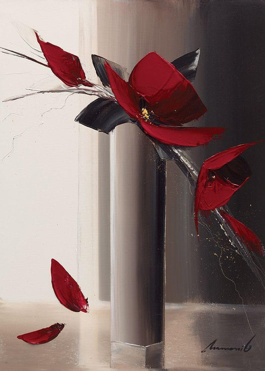 Bouquet rouge I White Modern Wood Framed Art Print with Double Matting by Tramoni, Oliver