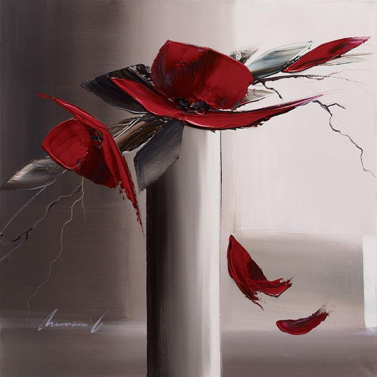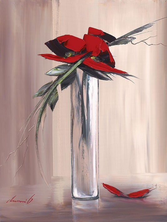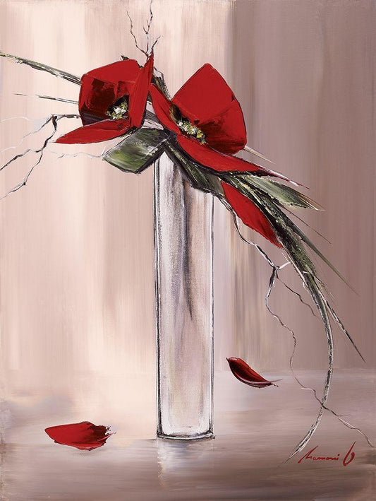 Les fleurs rouges I White Modern Wood Framed Art Print with Double Matting by Tramoni, Oliver