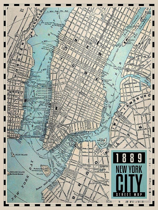 New-York City Map, 1889 White Modern Wood Framed Art Print with Double Matting by BRAUN Studio