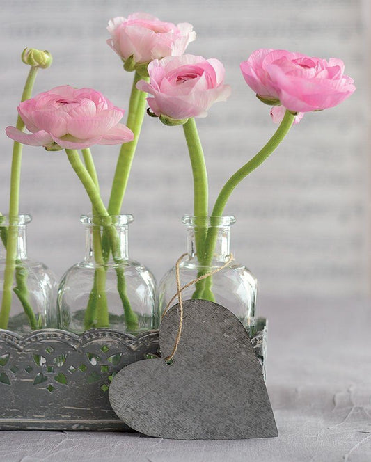 Composition florale - Renoncules II White Modern Wood Framed Art Print with Double Matting by Chatelain, Sonia