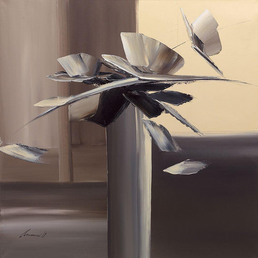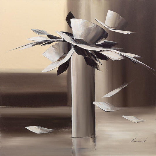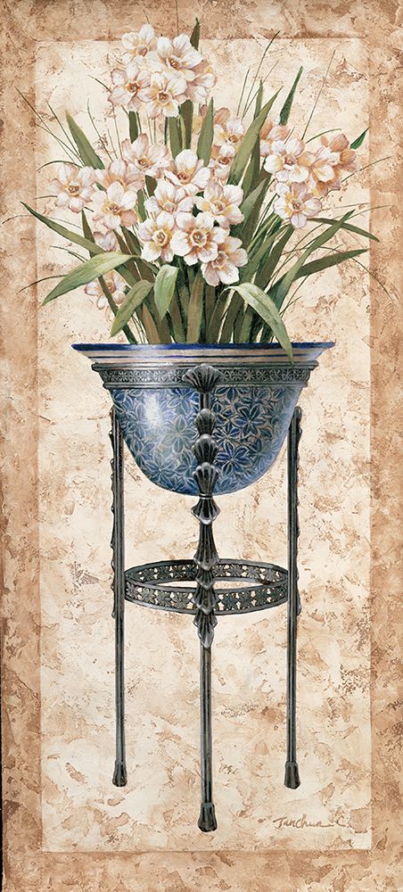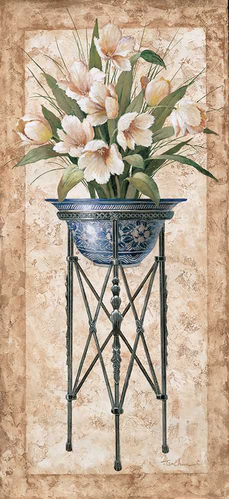 floral Pedestal I White Modern Wood Framed Art Print with Double Matting by Unknown