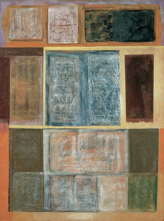 Ochre and Grey Abstract Il White Modern Wood Framed Art Print with Double Matting by Inuit