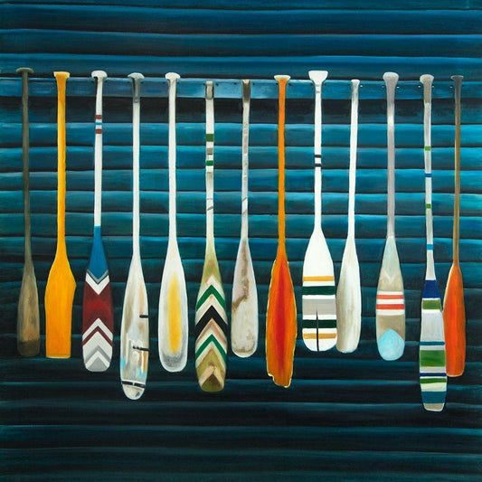 COLORFUL PADDLES ON THE DOCK White Modern Wood Framed Art Print with Double Matting by Atelier B Art Studio