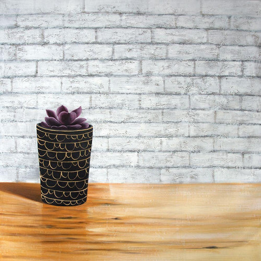 SUCCULENT IN A POT White Modern Wood Framed Art Print with Double Matting by Atelier B Art Studio