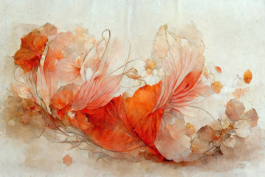 Persian Red Flowers White Modern Wood Framed Art Print with Double Matting by Treechild