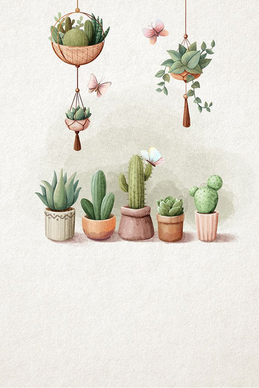 Vintage Cactus Plants White Modern Wood Framed Art Print with Double Matting by Thai, Xuan