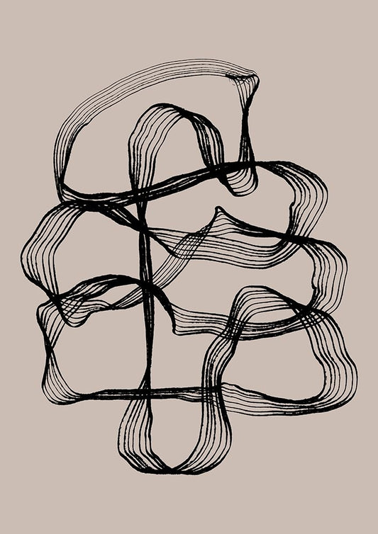 Ink Black and Beige White Modern Wood Framed Art Print with Double Matting by Treechild