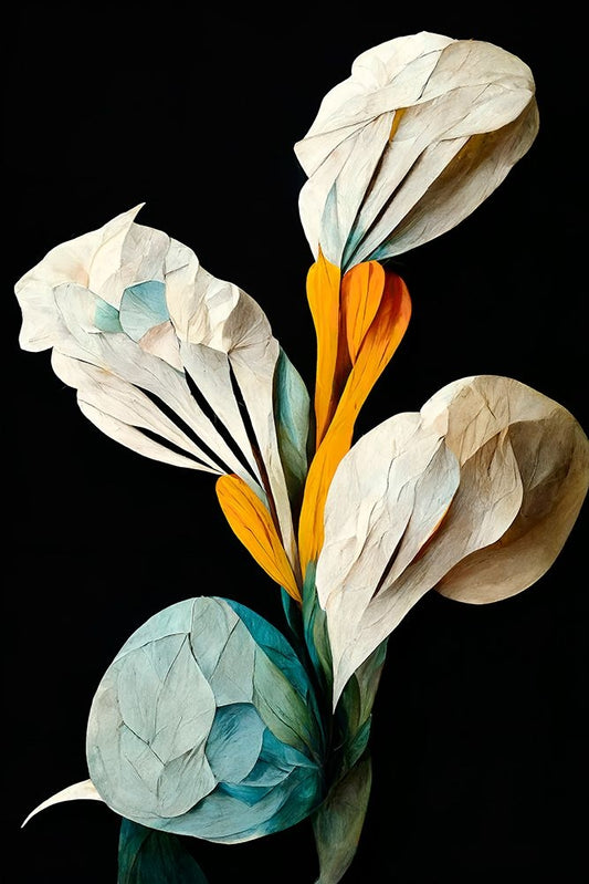 Dry Flower Bouquet White Modern Wood Framed Art Print with Double Matting by Treechild