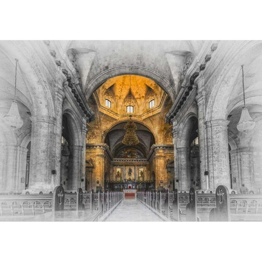 Cuba Church BandW Gold Ornate Wood Framed Art Print with Double Matting by Brown,Victoria