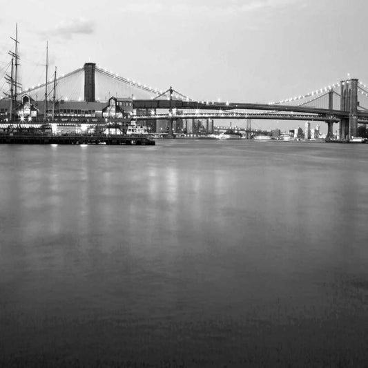 Brooklyn Bridge bw Gold Ornate Wood Framed Art Print with Double Matting by Telik, Tracey
