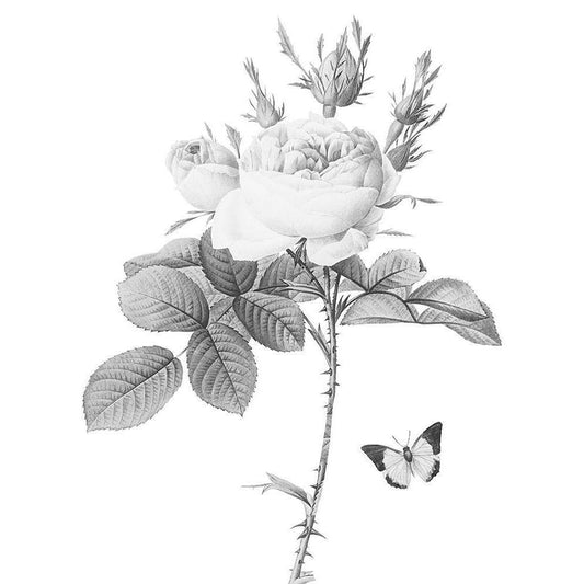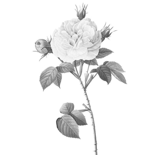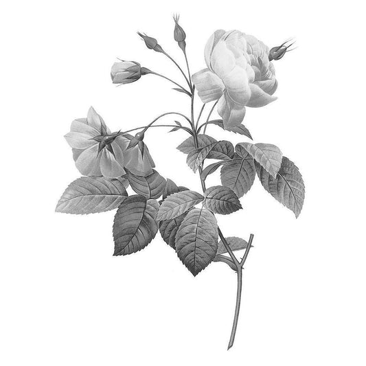 Greyscale Floral Gold Ornate Wood Framed Art Print with Double Matting by Villa, Mlli