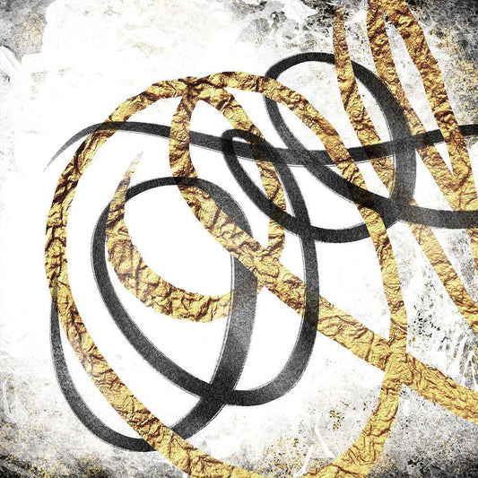 Gold And Black Scribble 3 Gold Ornate Wood Framed Art Print with Double Matting by Prime, Marcus