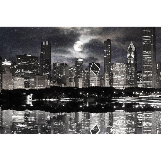 Full Moon Chicago 2 Gold Ornate Wood Framed Art Print with Double Matting by Prime, Marcus