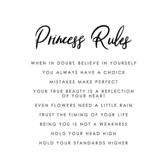 Princess Rules Black White Gold Ornate Wood Framed Art Print with Double Matting by Straatsma, Leah