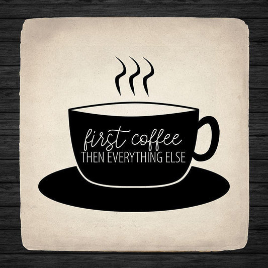 First Coffee 2 Gold Ornate Wood Framed Art Print with Double Matting by Allen, Kimberly