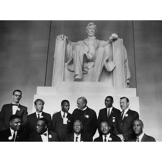 Civil Rights March on Washington-D.C. Leaders of the march in front of the statue of Abraham Lincoln Gold Ornate Wood Framed Art Print with Double Matting by U.S. Archives