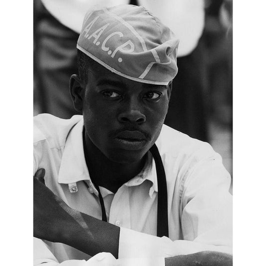 Civil Rights March on Washington-D.C. Man Wearing AACP Hat Gold Ornate Wood Framed Art Print with Double Matting by U.S. Archives