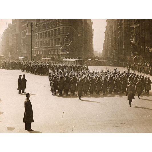 WWI The famous 369th arrive in New York City Gold Ornate Wood Framed Art Print with Double Matting by U.S. Archives