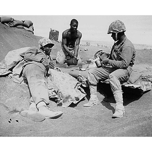 WWII Marines decorated by the famed Second Marine Division Gold Ornate Wood Framed Art Print with Double Matting by U.S. Archives