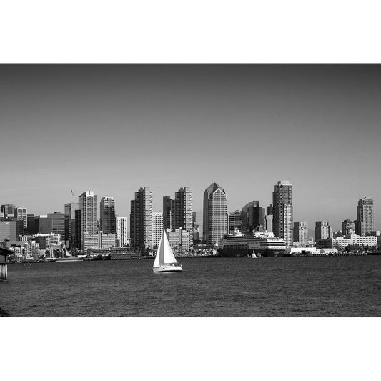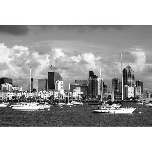 Skyline of San Diego California Black and White Gold Ornate Wood Framed Art Print with Double Matting by Highsmith, Carol