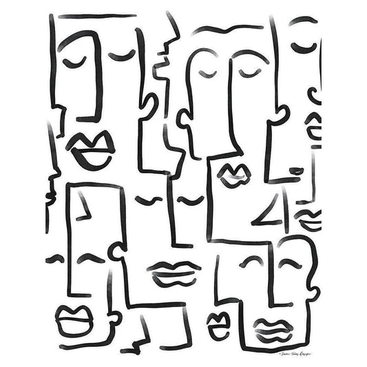 Faces Drawing Gold Ornate Wood Framed Art Print with Double Matting by Seven Trees Design