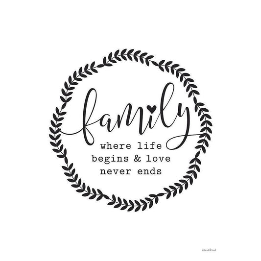 Family - Where Life Begins Gold Ornate Wood Framed Art Print with Double Matting by Lettered and Lined
