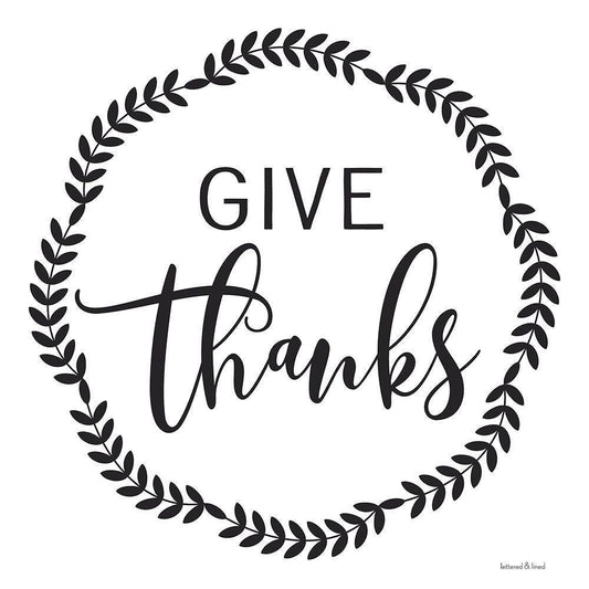 Give Thanks Gold Ornate Wood Framed Art Print with Double Matting by lettered And lined