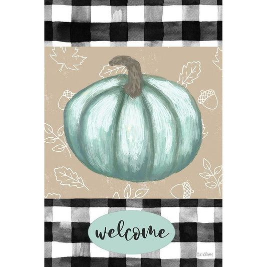 Welcome Blue Pumpkin Gold Ornate Wood Framed Art Print with Double Matting by Larson, Lisa