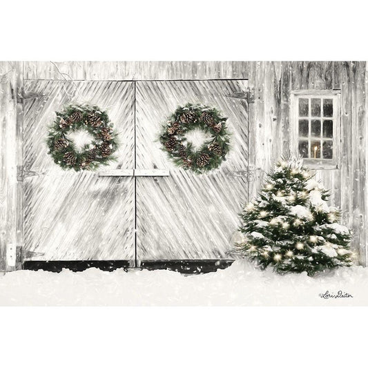 Christmas Barn Doors Gold Ornate Wood Framed Art Print with Double Matting by Deiter, Lori