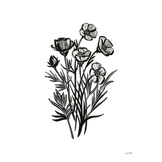 Pen and Ink Wildflower II Gold Ornate Wood Framed Art Print with Double Matting by House Fenway