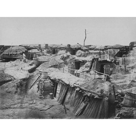 Quarters of men in Fort Sedgwick Generally known as Fort Hell Gold Ornate Wood Framed Art Print with Double Matting by OSullivan, Timothy H