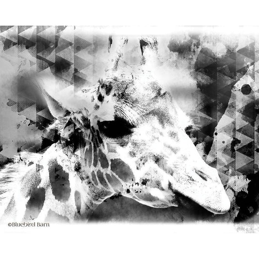 Modern Black And White Giraffe Gold Ornate Wood Framed Art Print with Double Matting by Bluebird Barn