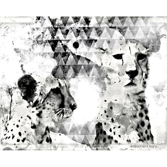 Modern Black And White Cheetahs Gold Ornate Wood Framed Art Print with Double Matting by Bluebird Barn
