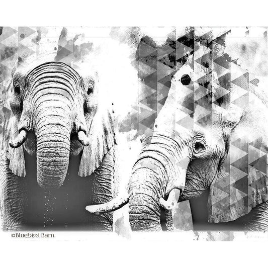 Modern Black And White Elephants Gold Ornate Wood Framed Art Print with Double Matting by Bluebird Barn