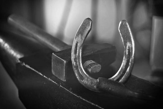 Horseshoes White Modern Wood Framed Art Print with Double Matting by The Yellowstone Collection