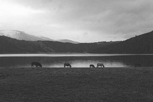 Lakeside Grazing White Modern Wood Framed Art Print with Double Matting by The Yellowstone Collection