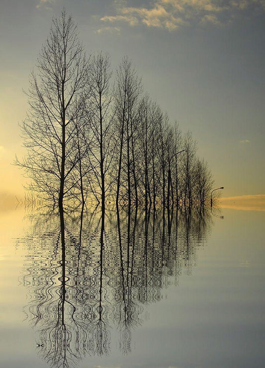 Reflections White Modern Wood Framed Art Print with Double Matting by Anonymous