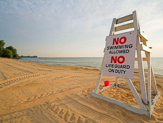 No Swimming, Color White Modern Wood Framed Art Print with Double Matting by Anonymous
