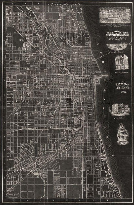 Antique Map of Chicago White Modern Wood Framed Art Print with Double Matting by Blanchard