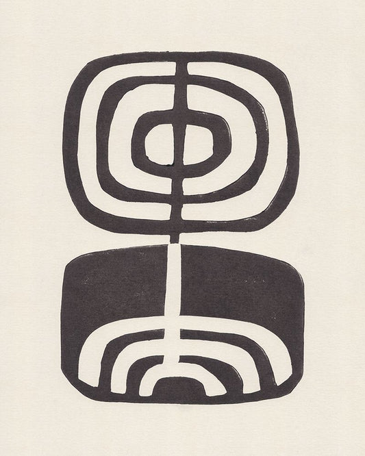 Linocut Abstract #7 Black Ornate Wood Framed Art Print with Double Matting by Galitsyna, Alisa