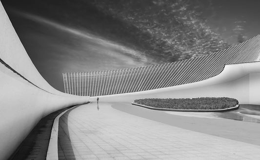 Industrial FaAsade | Receding Lines Black Ornate Wood Framed Art Print with Double Matting by Ruckert, Stephan