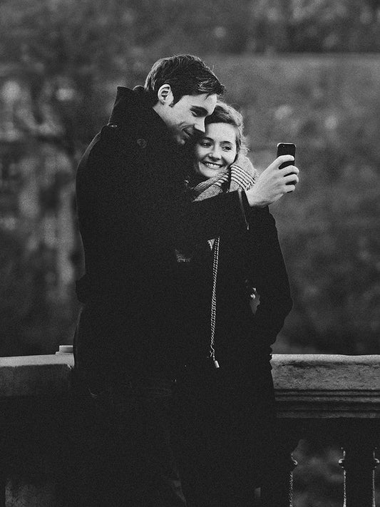 Couple Selfie Black Ornate Wood Framed Art Print with Double Matting by Yamamoto, Eiji