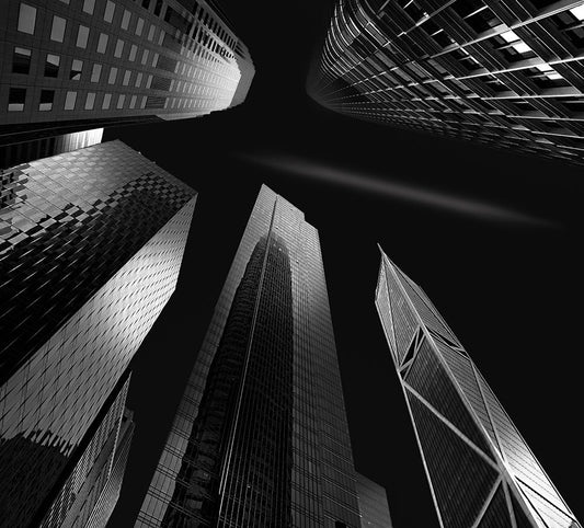 Skyscrapers Black Ornate Wood Framed Art Print with Double Matting by Zeng, Jiahong